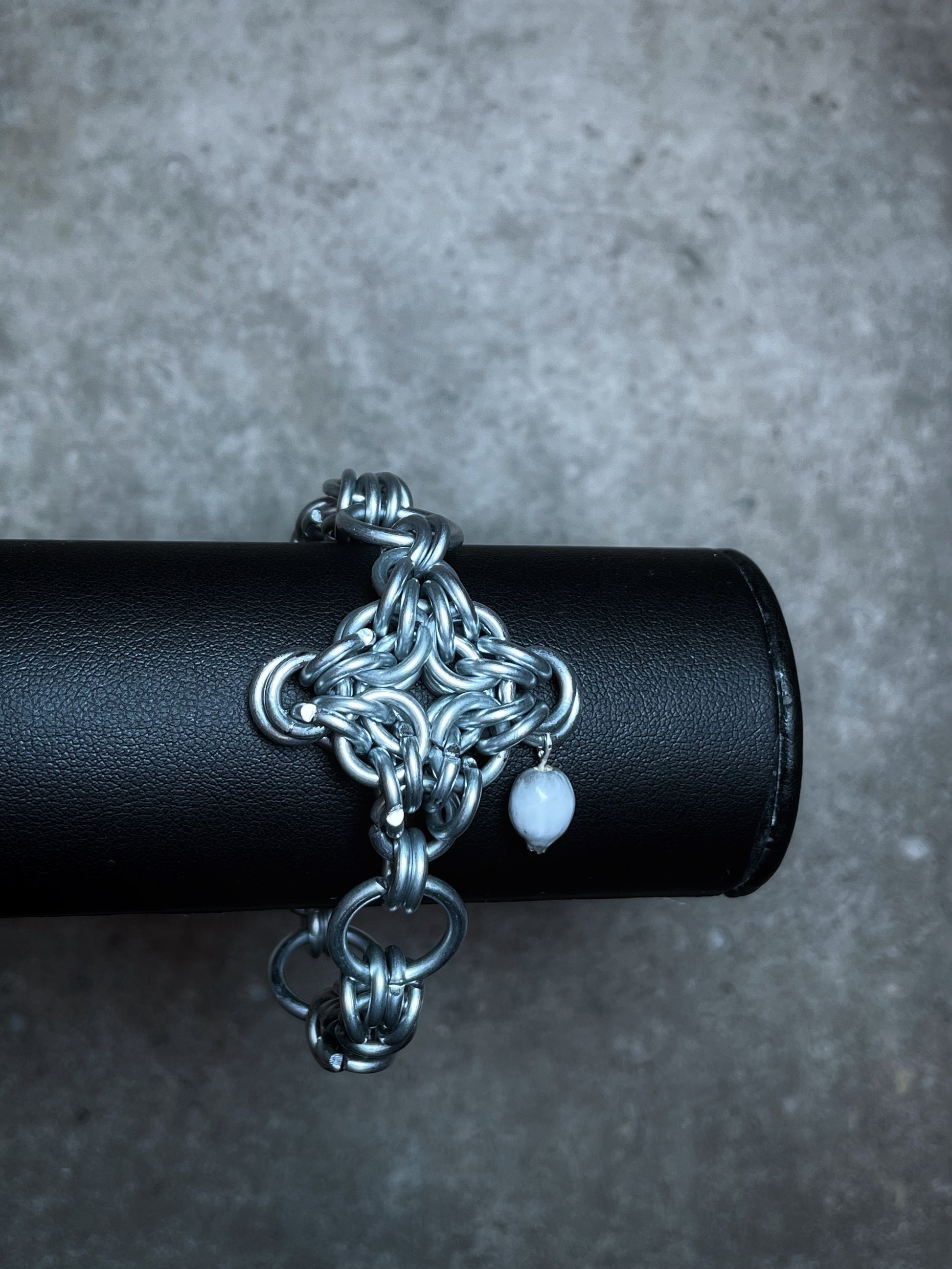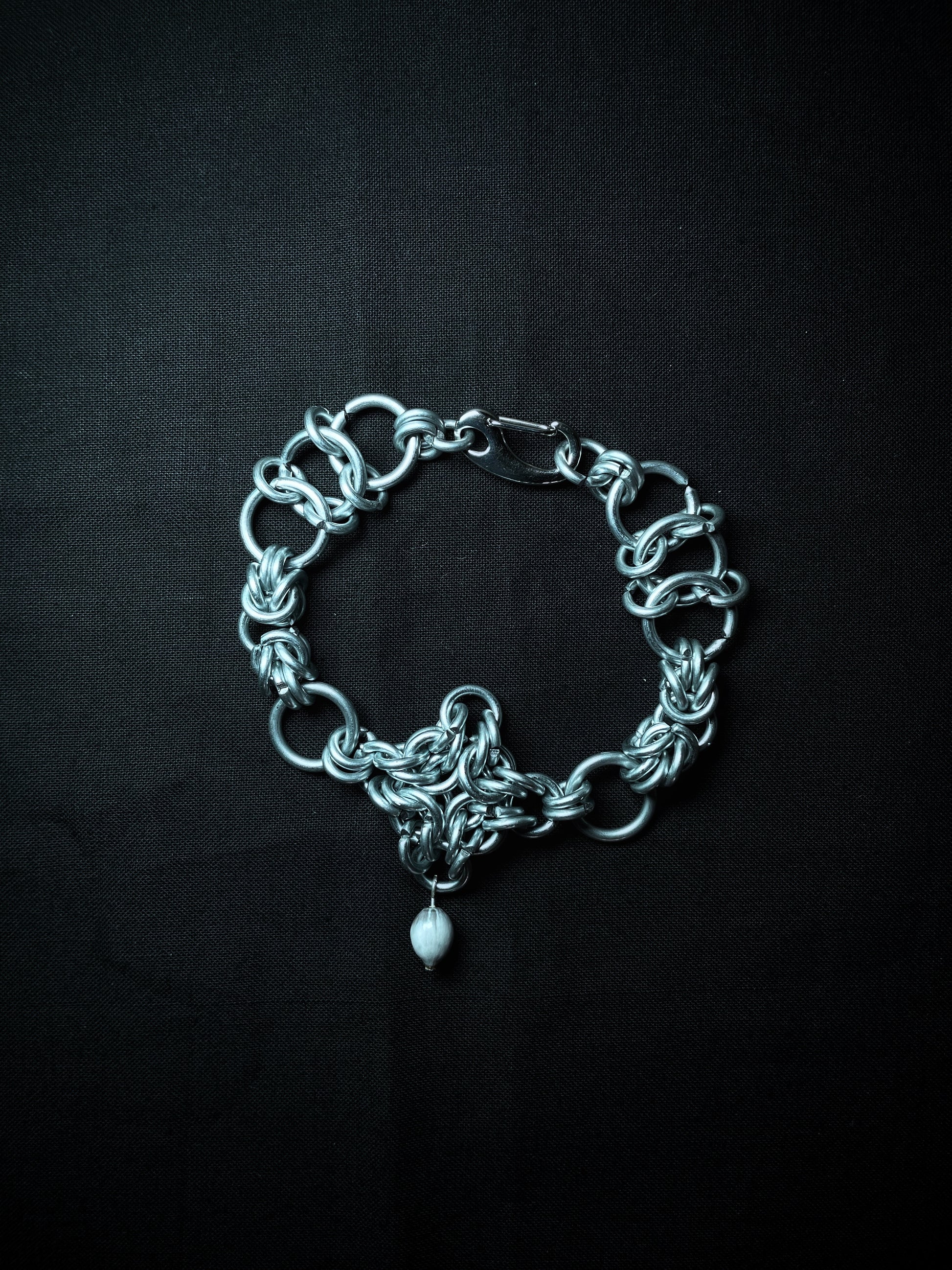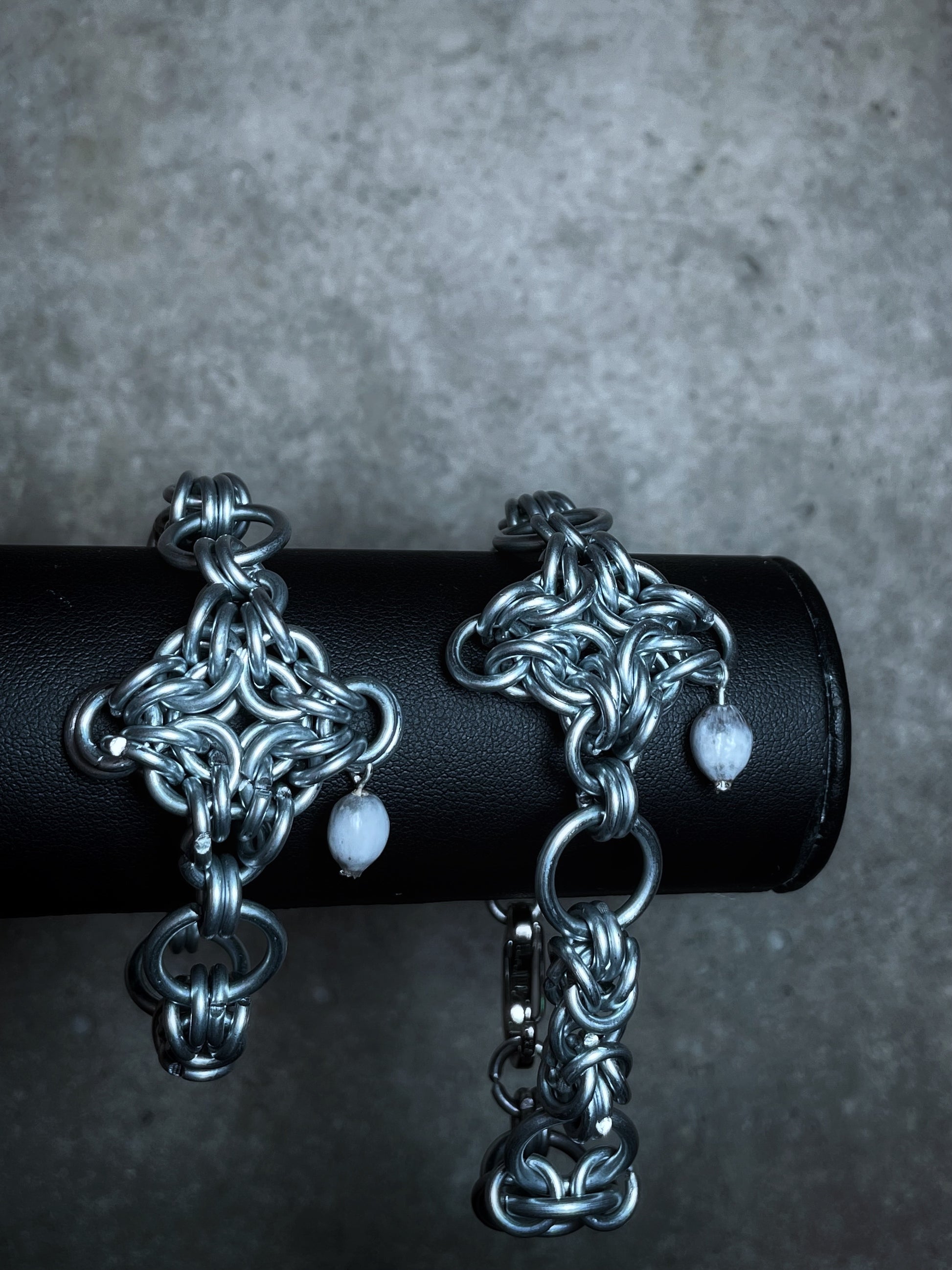 Composée d'anneau en acier galvanisé, d'une graine Larme de Job et d'un fermoir mousqueton en acier inoxydable.