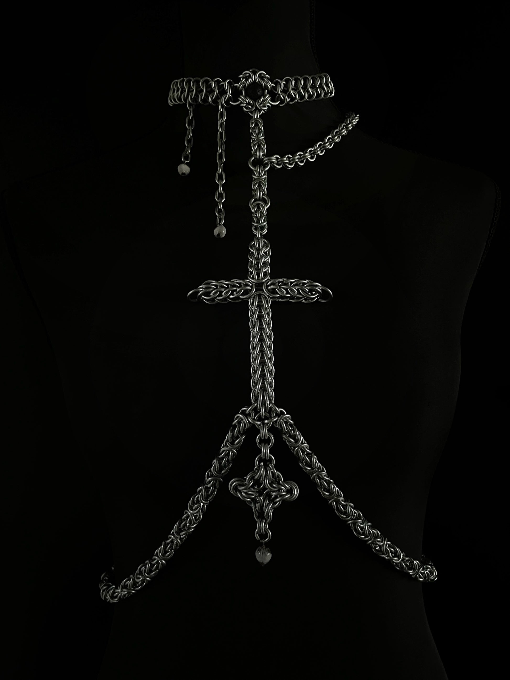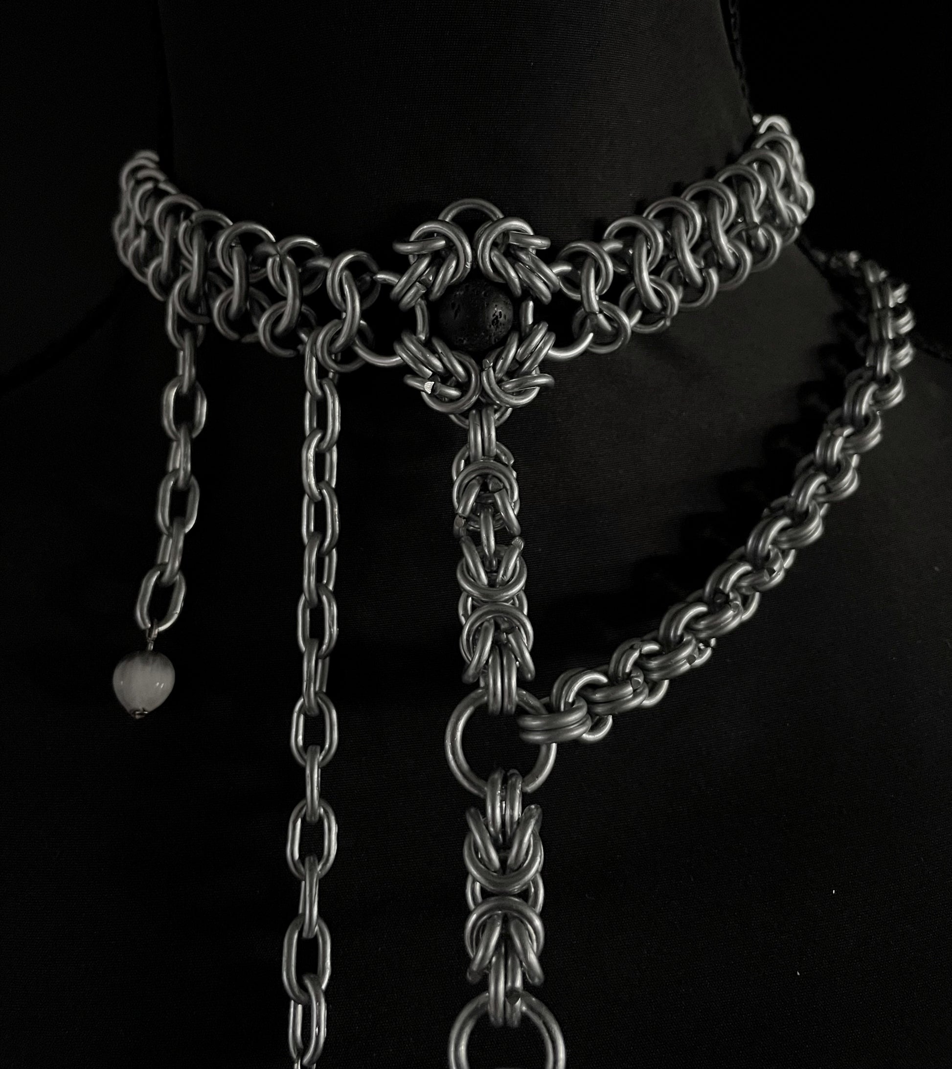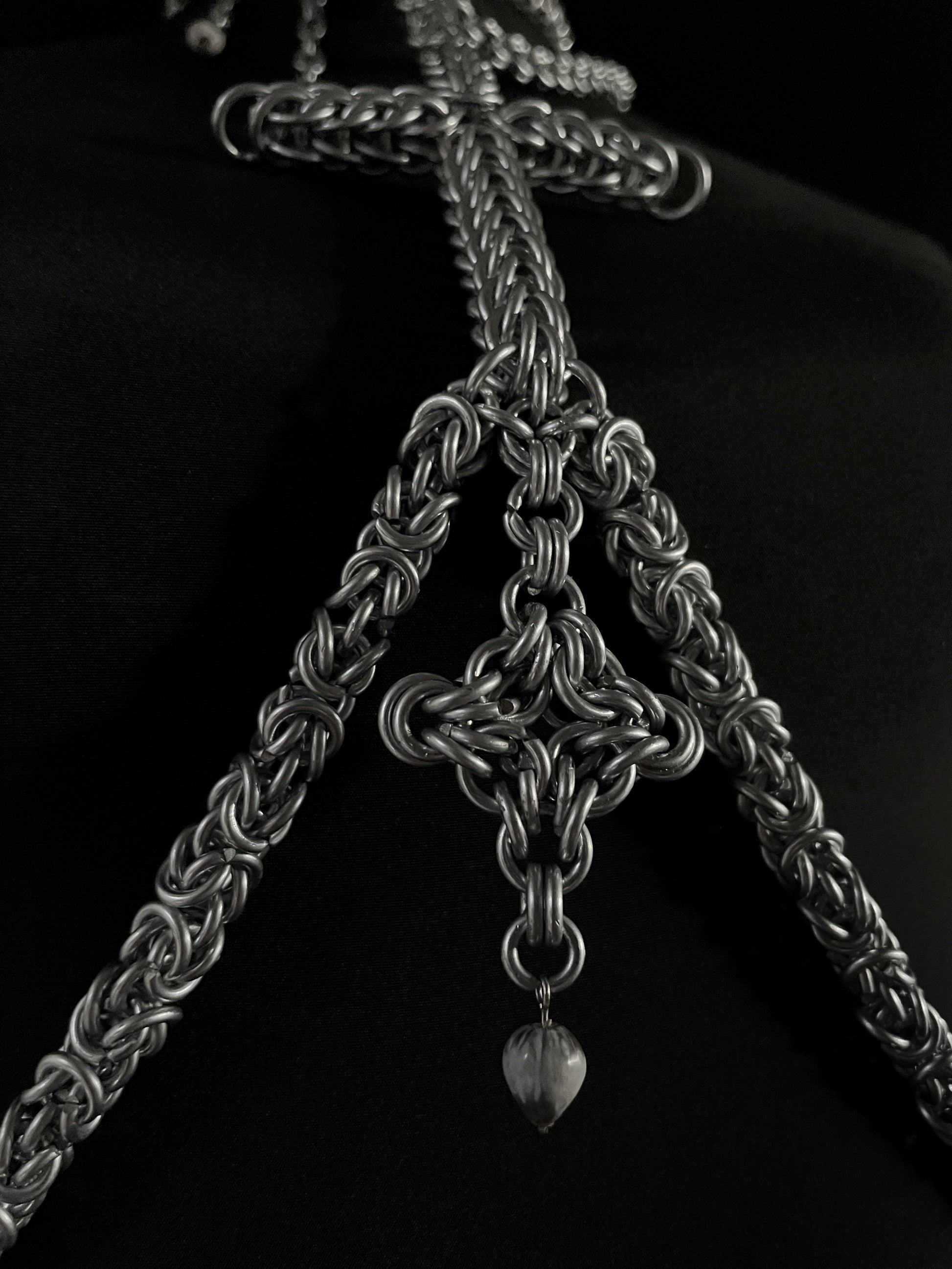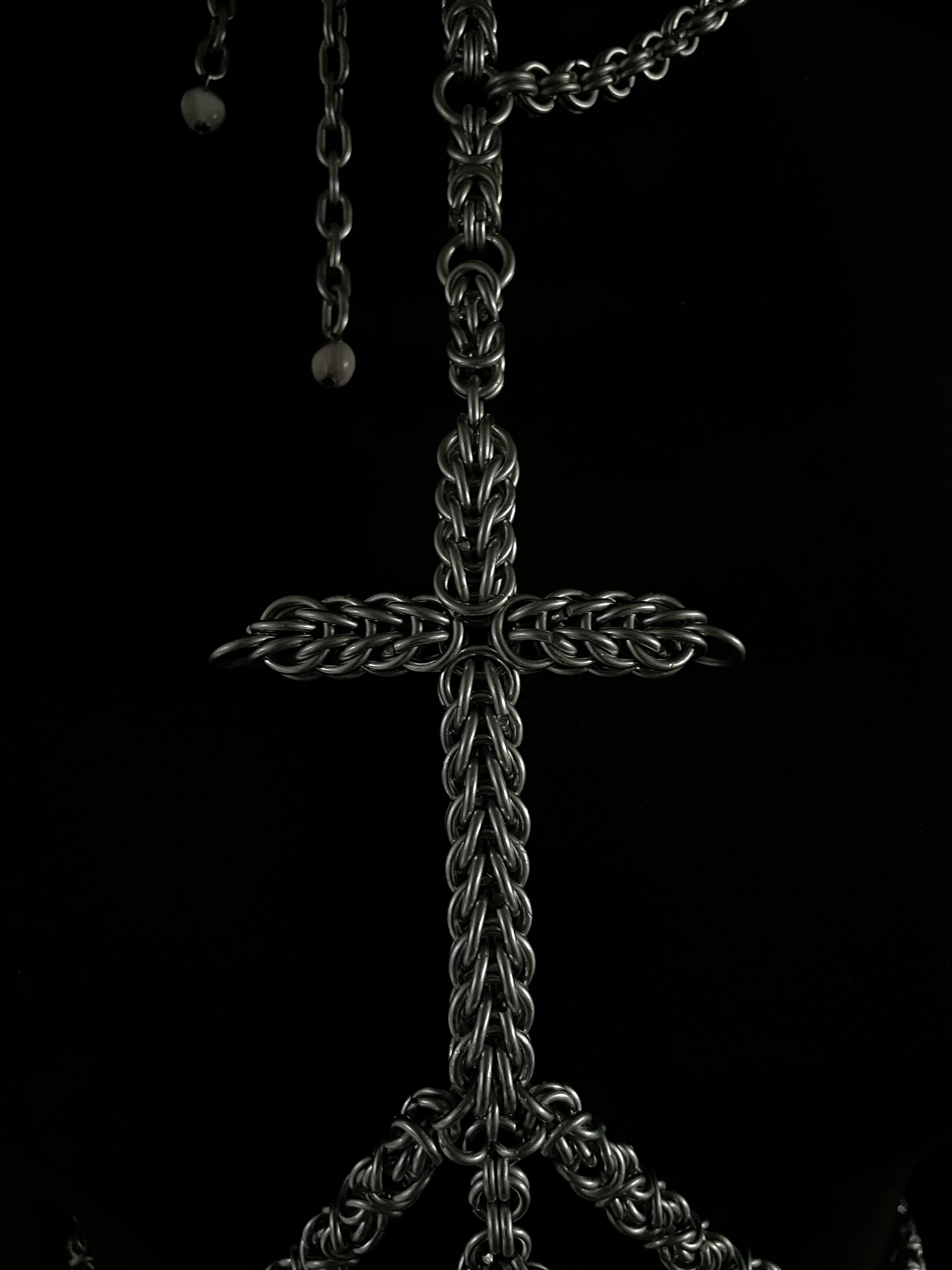 Les anneaux sont fabriqués à partir d'un fil en acier galvanisé, formé en rouleaux et soigneusement découpé à l'aide d'une pince coupante. Ces anneaux sont ensuite assemblés pour former la création FER.RITE.LARME.