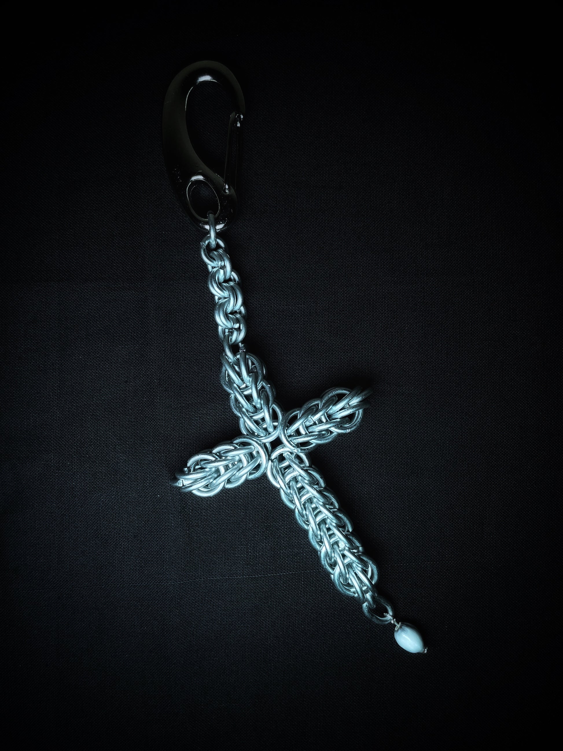 Les anneaux sont fabriqués à partir d'un fil en acier galvanisé, formé en rouleau et soigneusement découpés à l'aide d'une pince coupante. Ces derniers sont ensuite assemblés pour former la création LARME.D'ÉPÉE.