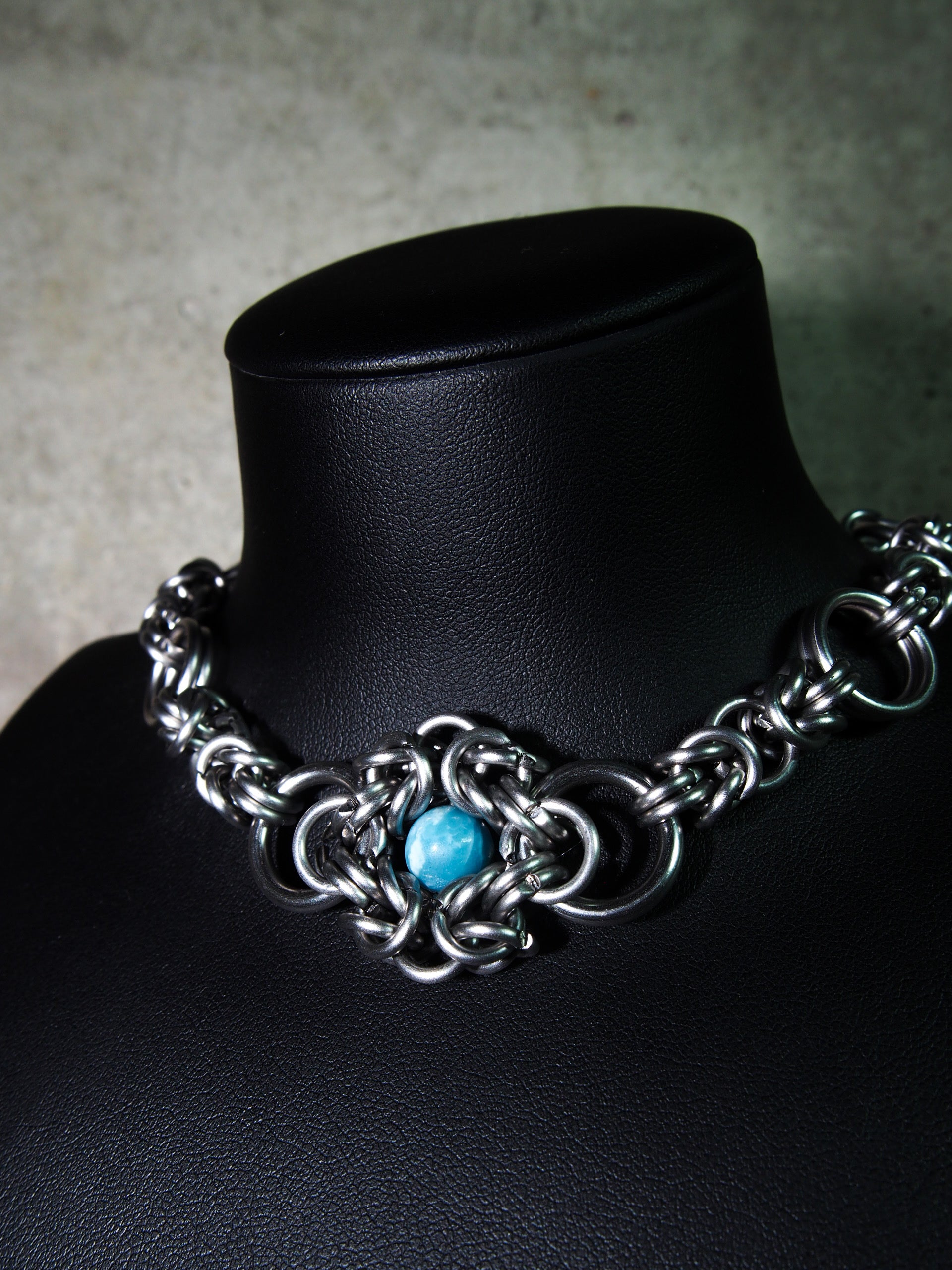 EYE.II. est un collier en métal, graine guadeloupéenne et pierre naturelle.