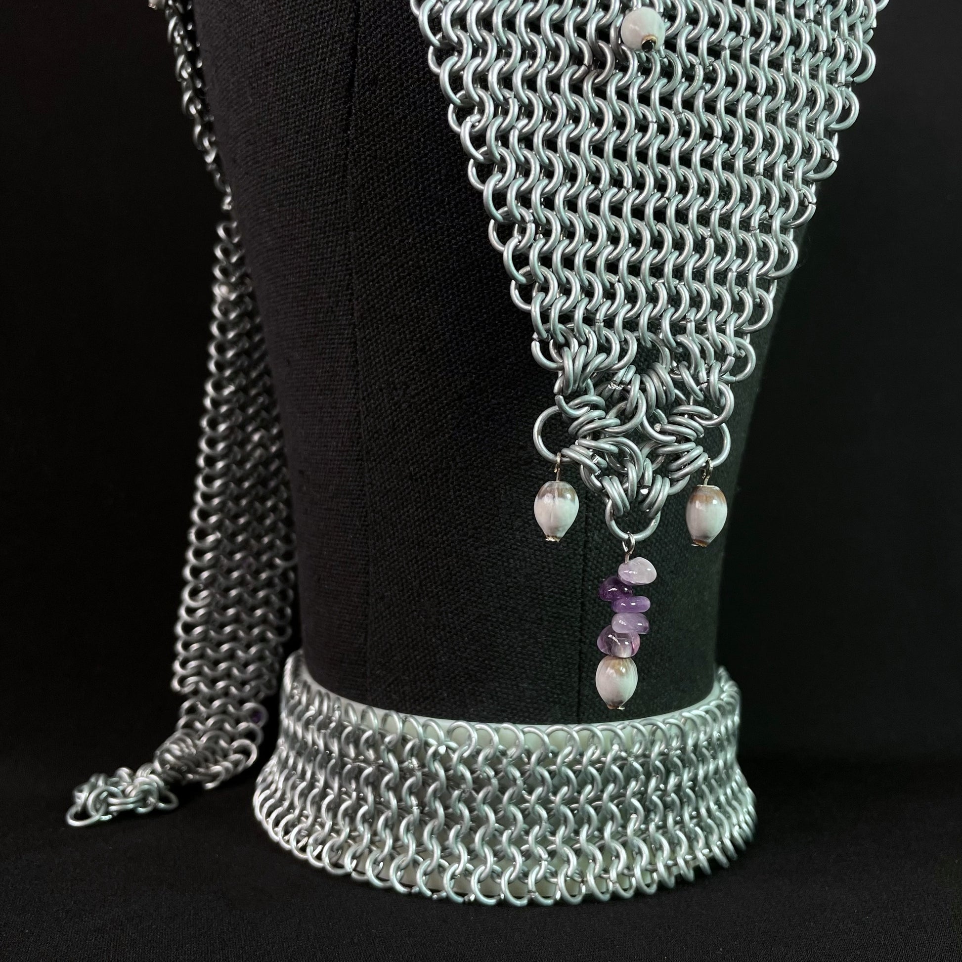 Composée d'anneau en acier galvanisé, de graines Larme de Job et d'améthyste.